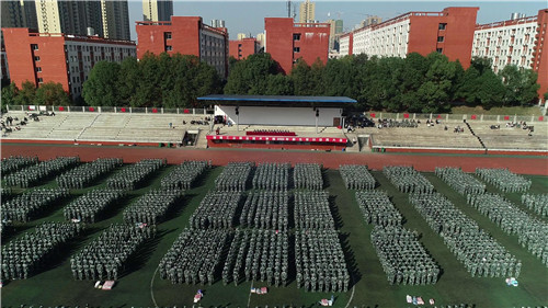 10月22日上午,五千余名新生身着迷彩服,排列整齐,2020级新生军训动员大会在学校田径场举行。我校党委委员、副校长成涛,军训团团长李杰,学生工作处、招生就业处、校团委相关负责人,各二级学院党总支书记、新生班辅导员、全体军训教官以及2020级新生参加动员大会。大会由保卫处处长段可主持。