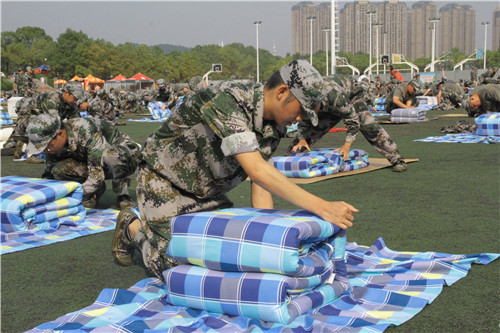 为培养学生良好的生活习惯,提高学生整理内务水平,加强军训训练效果,10月27日下午,我校开展2020级新生叠被子大赛,各连队分别派出10名学生参与大赛。