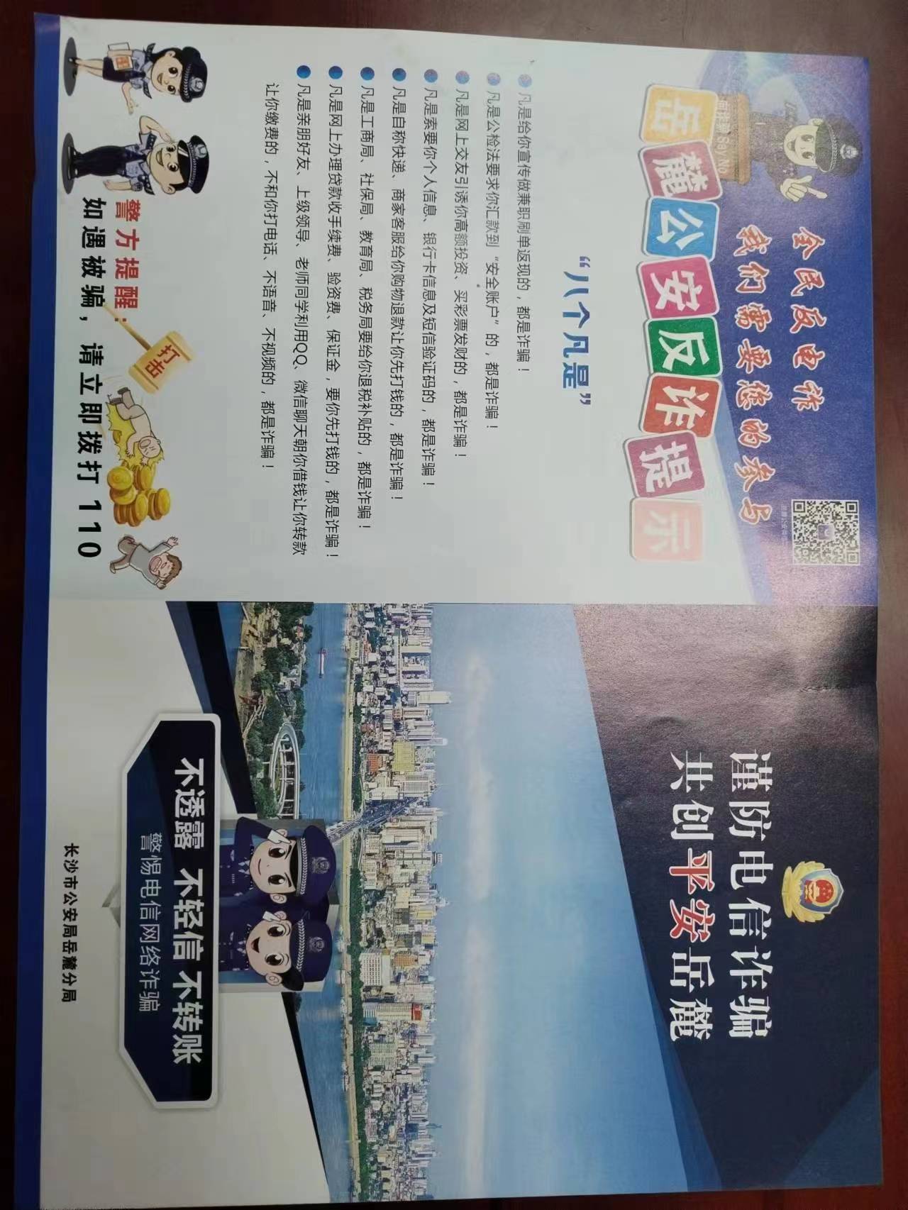 为了进一步加强大学生防范电信网络诈骗工作,有效提升学生的反诈意识和能力,学校保卫部统筹规划、提前部署,在开学前发布《关于新学期进一步加强大学生防范电信网络诈骗工作的通知》,向新生发放防范电信诈骗宣传折页11000余份,指导各学院在学生入校前通过线上主题班会开展反电诈教育,组织召开专题宣讲会20余场次,校院新媒体平台以及各学生公寓信息发布系统等开展立体化的宣传展示活动,旨在通过形式丰富的宣传教育提升反诈工作效果,有效守护学生人身财产安全。