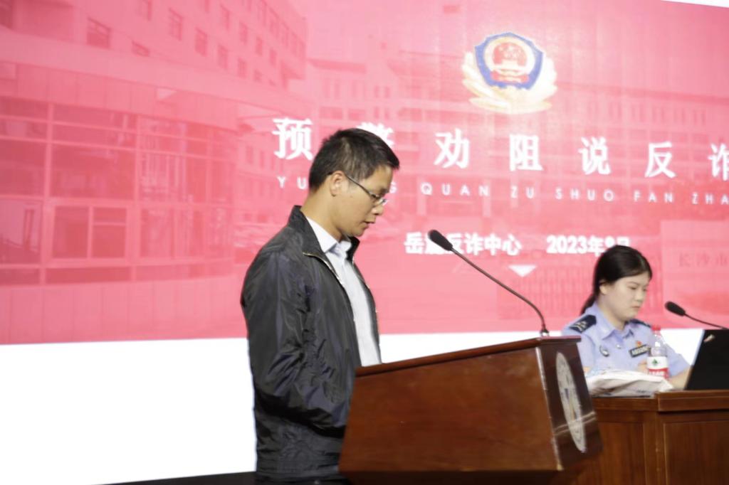 9月22日,学校面向2023级新生举办反电诈专题报告会,湘江新区王紫威警官担任主讲。修涛围绕电信诈骗的总体形势、社会影响、常见类型、惯用手段以及防范措施等方面展开介绍,通过讲解“冒充熟人”、“刷单返利”等典型案例,引导同学们做到“不听、不信、不转帐”、“多看、多思、多核实”,教育学生在做到有效防范电信网络诈骗的同时,坚决不参与“两卡倒卖”等违法犯罪活动。报告会后,含浦派出所张风华队长向与会人员通报了近期电信诈骗相关情况,指导学生遇到可疑情况时如何报警处置。