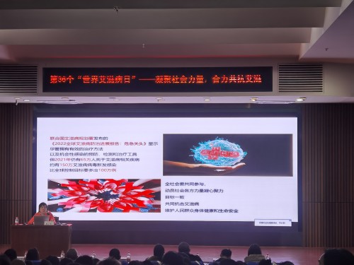 樊小兰主任从艾滋病的定义、危害、传播途径、阻断和预防四个方面进行了生动形象的讲解。她运用直观的图片、详实的数据、明晰的图表以及真实的案例,使在场师生对艾滋病的基本概念、传播途径、高危行为及预防措施有了更准确的认识。她呼吁我校师生积极传播防艾知识,让更多人了解艾滋病、认识艾滋病、预防艾滋病。