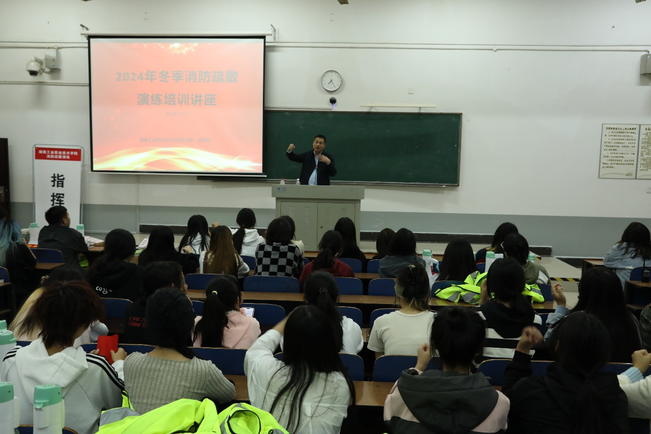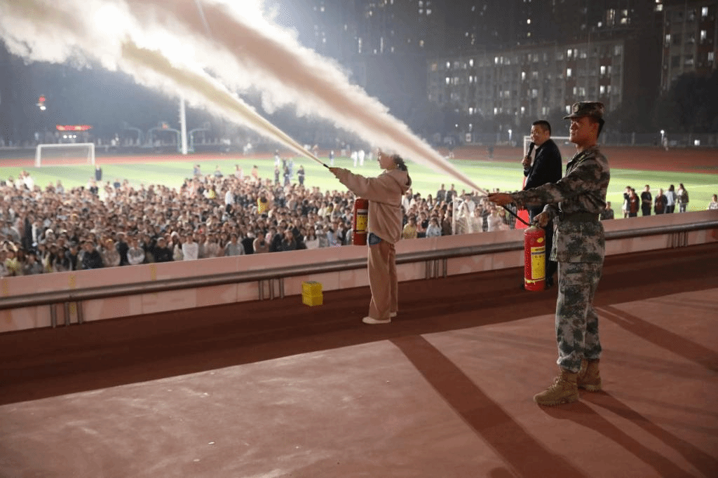 2024年11月7日晚,我校在夜间组织了针对入住学生的消防疏散演练。消防疏散演练前,我校邀请消防专家对各楼栋的疏散管理学生进行疏散知识培训,并在演练后为参演学生进行逃生自救培训和消防器材实操讲解。
