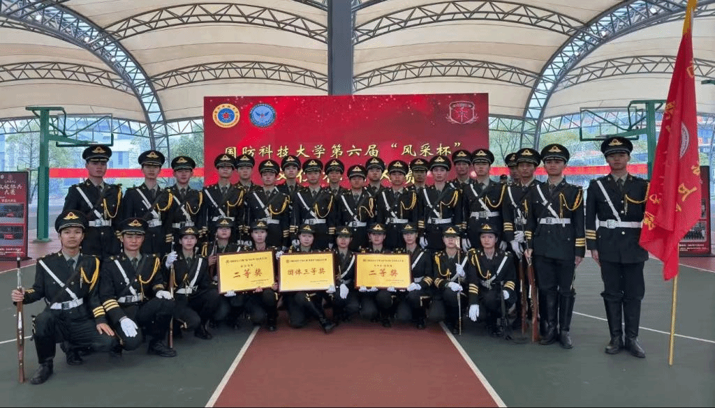 2024年11月24日,“兵之道”军事文化节第六届“风采杯”仪仗标兵大赛在长沙举行。来自全省的高校团队同台竞技,奋力角逐各大奖项。我校国旗护卫队在大赛中展现非凡风采,取得了仪仗组二等奖,班组赛二等奖,团体三等奖的好成绩。