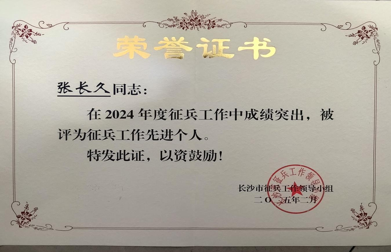 近日,湖南湘江新区(岳麓区)2025年人民武装工作会议召开,长沙市委副书记、湖南湘江新区(长沙高新区)党工委书记、岳麓区委书记、岳麓区人武部党委第一书记谭勇出席并讲话,我校荣获“2024年度高校征兵工作先进单位”称号,保卫部、武装部张长久同志获评“长沙市征兵工作先进个人”称号。
