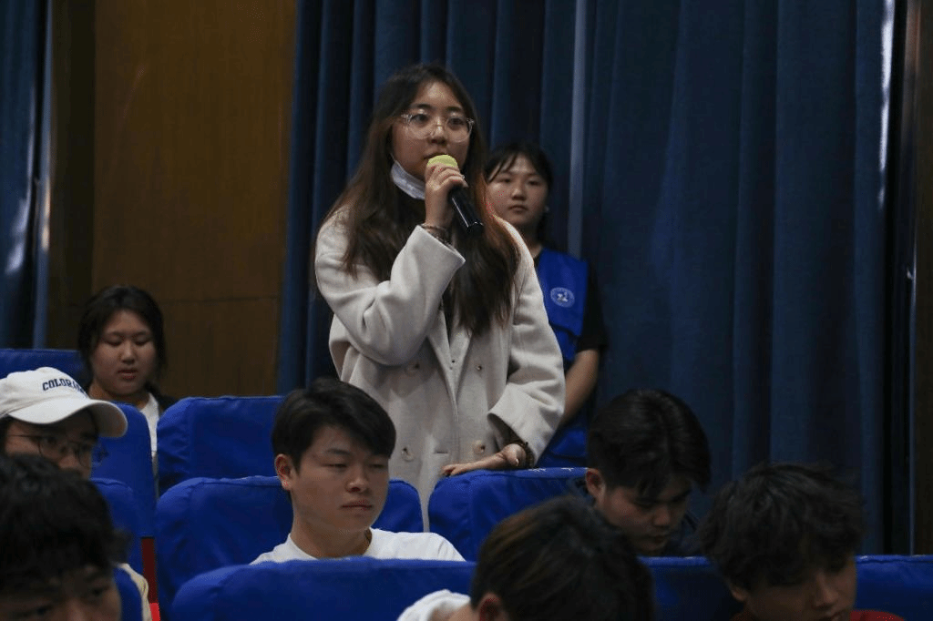 在答疑解惑环节中,来自室内设计2023-1班的曾佳美同学提出了自己的疑惑:作为大一的学生,创新创业方面应该要哪些方面的准备,对于专业室内设计的同学来说,在创新创业上能不能给一些新的思路?