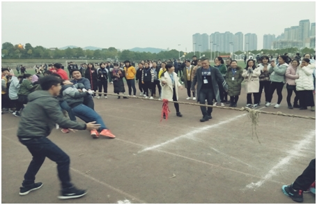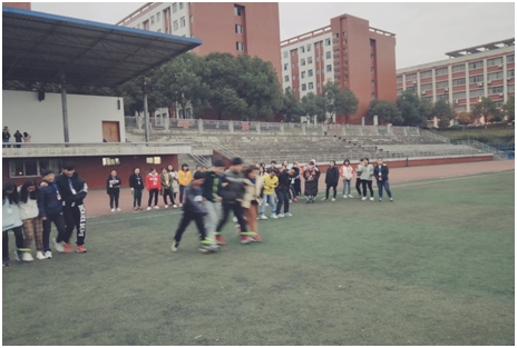 三个队伍都早已做好准备,班长曹华平对比赛做了具体说明后比赛正式开始。激烈的拔河比赛与四人五足都如火如荼的进行着。拔河比赛的参赛人员都卯足了劲拼命往后拉,为参赛的都在场边用激烈的呐喊为团队加油。篮球和四人五足更是欢笑与激情交织在一起。所有参赛人员展现出努力拼搏,不到最后一刻不放弃的坚韧品质。