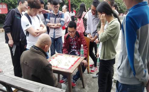 学员们陪老人下棋