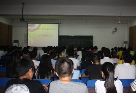 2014年9月26日晚,我院党校第三期学生党员发展对象培训班开班典礼在2404教室隆重举行。院党委副书记周立华、学院调研员刘琼、党校副校长陈方和各院系学生党支部书记及164名学员参加了典礼。典礼由经管系学生一党支部书记、本期培训班班主任谭群峰老师主持。