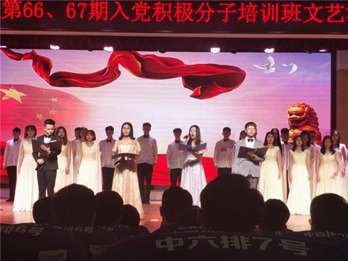 9月10日,党校第66、67期入党积极分子培训班文艺汇演在大学生活动中心精彩上演。学校调研员刘琼、党校副校长陈方,经济管理学院分党校、信息工程学院分党校负责人及培训班班主任出席活动。