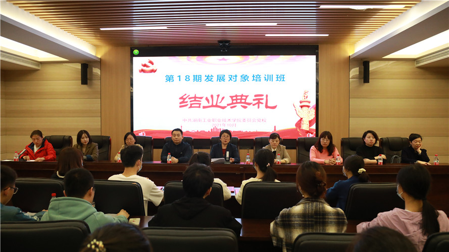 李蕙宣读《关于表彰党校第十八期发展对象培训班先进集体和先进个人的决定》。商务贸易学院学习小组被评为“优秀学习小组”,李怡等6人被评为“优秀学员”,谭宁等3人被评为“自学先进个人”。