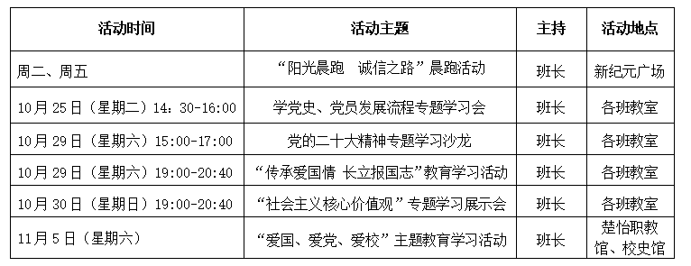 学员自学任务贯穿于整个培训期间,要全文认真通读《中国共产党党章》《中国共产党纪律处分条例》《中国共产党廉洁自律准则》《关于新形势下党内政治生活的若干准则》《中国共产党党内监督条例》等资料,认真学习党的二十大会议精神,参加“学习强国”学习,按时完成每日学习。