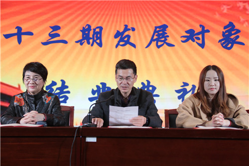 随着庄严的国歌声的响起,党校第十三期发展对象培训班结业典礼正式开始。