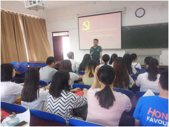 2018年5月29日下午3:30经济管理学院分党校学生党员培训班在1304举行开班典礼,学院党总支书记李树德、学生支部书记彭瑛、学院团总支书记盛娜出席参加本次开班典礼。