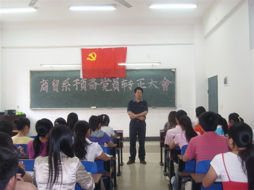 讯:2009年6月1日下午3点整,商贸旅游系于二教108教室召开了预备党员转正的会议,我系共有24名“新鲜血液”加入到正式党员的行列。