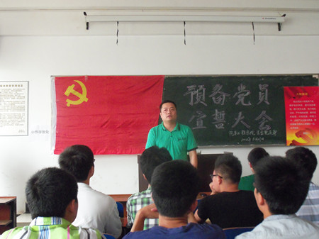 最后,段可书记为本次大会作总结讲话。首先,他对本次新发展的党员表示了热烈的祝贺,并对他们提出了几点希望和要求。他要求,一是要在学习生活中真正按照入党誓词去实践,严格要求自己;二是在思想品质上,要做一个强者和勇者;三是今天在党旗下庄严宣誓的新党员,要紧密团结在党的旗帜下,积极工作,扎实学好文化知识,服务社会,为身边的同学树立良好的榜样,争取成为党组织中的一名优秀成员。