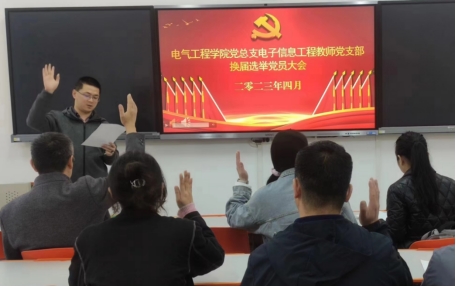 (电子信息工程教师党支部讯)根据学校基层党组织选举工作安排,电气工程学院电子信息工程教师党支部于2023年4月4日在力行楼9205召开了支部党员大会,选举产生党支部新一届委员会委员,会议由唐健豪同志主持。