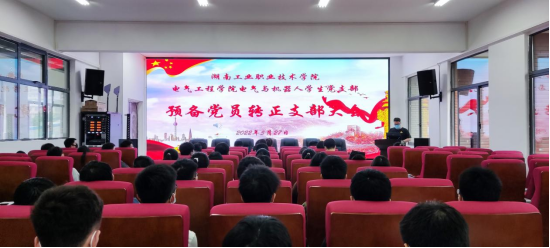 2022年5月27日下午,电气工程学院电气与机器人学生党支部在力行楼301教室召开预备党员转正支部大会。本次会议由电气与机器人学生党支部书记谭灿灿主持,该支部6名教师正式党员、8名学生正式党员及在校所有学生预备党员参加了此次会议。