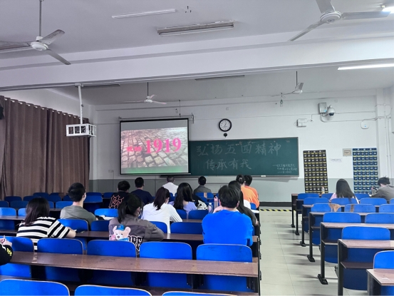 活动开始,全体学员集体观看由黄健中执导,陈道明、何政军、许晴等参演的《我的1919》,影片讲述了中国外交才子顾维钧作为中国政府全权代表参加1920年巴黎和会的种种经历,以及他的好友肖克俭为了抗争列强给中国讨回正义而自焚的感⼈事件。