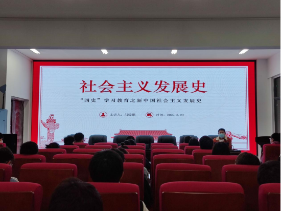 随后,刘书记以此问题为切入点,将今天的主题党课与之相结合,深入为全体学员讲解了《社会主义发展史》。党课过程中,刘书记旁征博引,全体参培学员认真学习,党课效果良好。