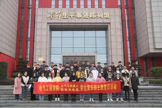 为围绕坚定理想信念、践行初心使命,通过“红色走读”等方式,深入革命遗址、革命纪念馆等进行学习考察,深入考察马克思主义的传播及革命先辈追求真理、坚守信仰的生动事迹。12月8日12时50分,电气工程学院电气与机器人、机电与电信学生党支部第十四期和第十五期发展对象共赴湖南雷锋纪念馆与湖南党史陈列馆,开展十二月主题党日活动。