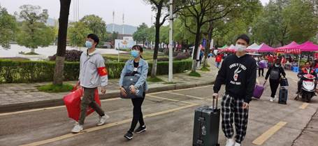 20201019日上午,电气学院机电与电信学生支部、电气与机器人学生支部全体学生党员组织开展“金秋迎新生,党员来护航”主题党日活动,在学校正门口、公寓门口、训练馆等报道点为2020级新生提供志愿服务。
