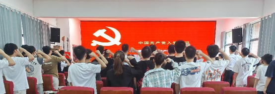紧接着蔡家蕊老师带领全体党员重温了入党誓词,坚定共产主义信念。