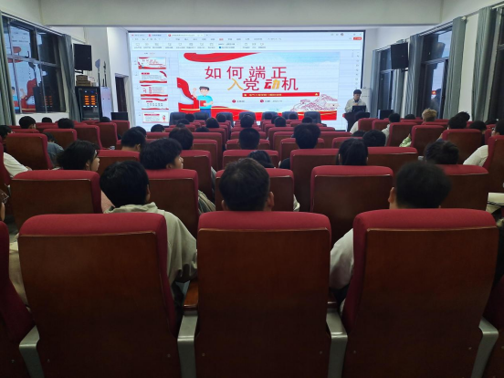 2023年10月12日18点30分,电气工程学院电气与机器人学生党支部书记王斯锐于力行楼9319教室为电气工程学院分党校第十三期党史党建初级培训班学员开展党课学习,党课主题为“如何端正入党动机”。