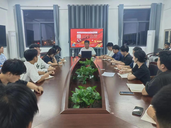 2023年10月17日18点30分,电气工程学院2023年下半年党员培训班全体学员在力行楼党员活动室参加由电气工程学院刘骏鹏老师主讲的党课,党课主题为“四个自信”。