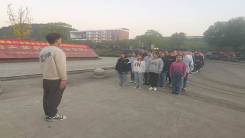 晨跑开始前,班委进行点到,做好考勤,培训班全体学员在升旗台前准时集合完毕,整装待发。