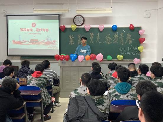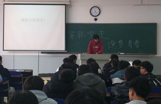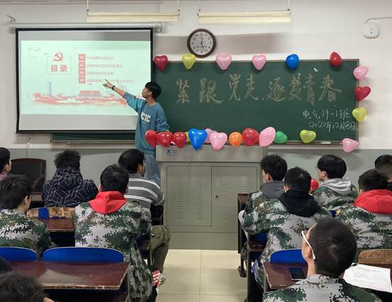 (电气19-1班团支书刘宇正在讲解组会内容)