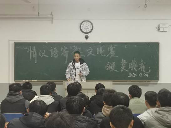 2020年12月23日晚,由电气工程学院团总支学生会主办院宣传部承办的“情以语寄”征文比赛颁奖仪式在1212教室举行。电气自动化2020-3班的周小喜同学凭借《记得春暖艳阳天,你我就相见》一文荣获一等奖。我院团总支负责人刘骏鹏老师出席并发表讲话。