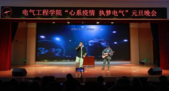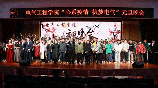 2020年12月30日晚,电气工程学院“心系疫情,执梦电气”元旦晚会在1102大学生活动中心隆重举办。电气工程学院党总支书记王俊、副院长刘峥以及全体辅导员老师同400多同学共庆元旦。