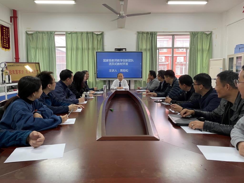 周劲松教授从什么是活页式教材、如何编写活页式教材等方面进行了专题讲座。电气自动化技术专业国家职业教育教师教学创新团队成员就活页式教材开发、建设等方面与周劲松教授进行了深入研讨和交流。