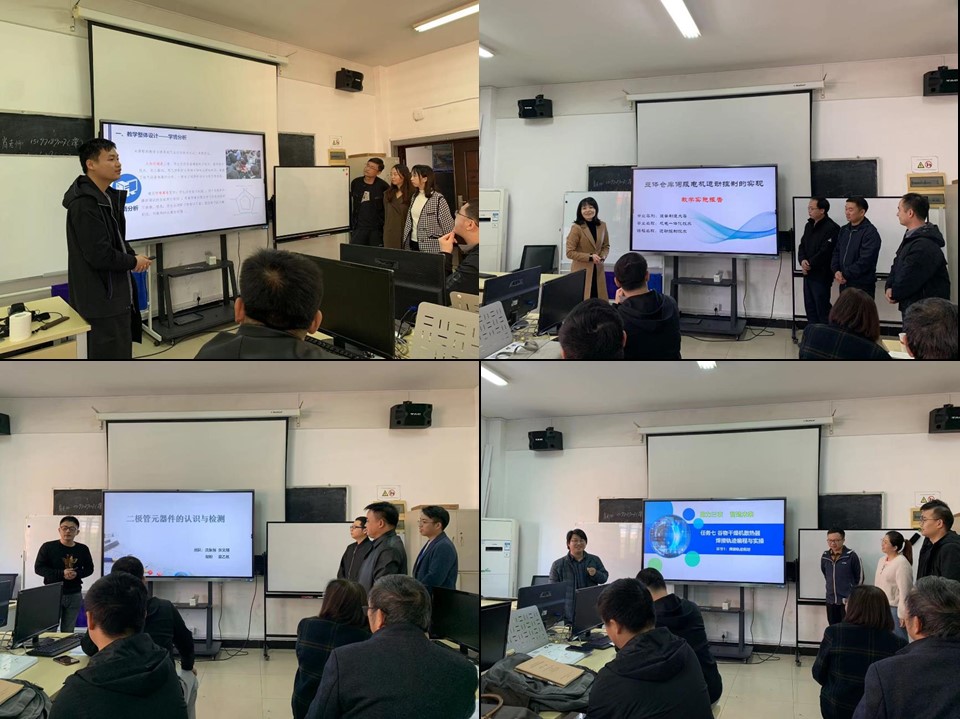 本次结业考核参照教师教学能力竞赛要求,全体学员分七组自主选择课程,进行了PLC、电气控制回路装调、电子技术等课程的教学设计。各小组成员通力合作,修订、制作了专业人才培养方案、课程标准、教案、课程实施报告等一系列资料。在结业考核现场,每小组推荐2位老师分别做课程设计汇报和教学片段展示,各组学员代表充分展现个人风采,出色的完成了课程设计汇报和教学片段展示。