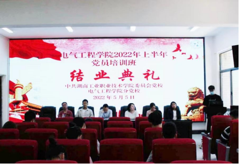 5月5日中午12:30,电气工程学院分党校2022年上半年党员培训班结业典礼在力行楼301举行。院党总支书记王俊、院党总支组织员陈英芳、电气与机器人学生党支部书记谭灿灿、机电与电信学生党支部书记周敏、院团总支书记刘骏鹏及各专业辅导员出席本次结业典礼,全体参培学员参加。典礼由周敏主持。
