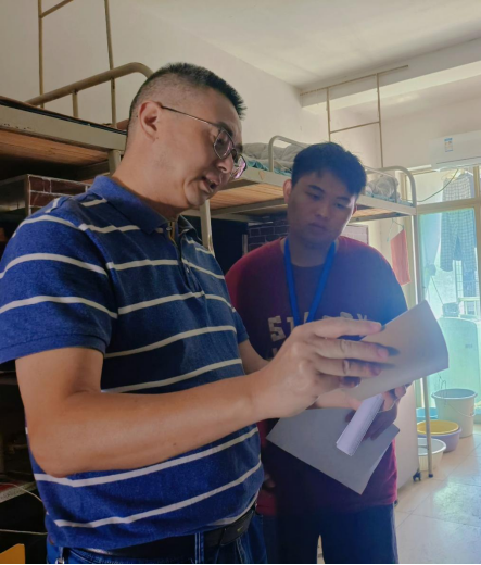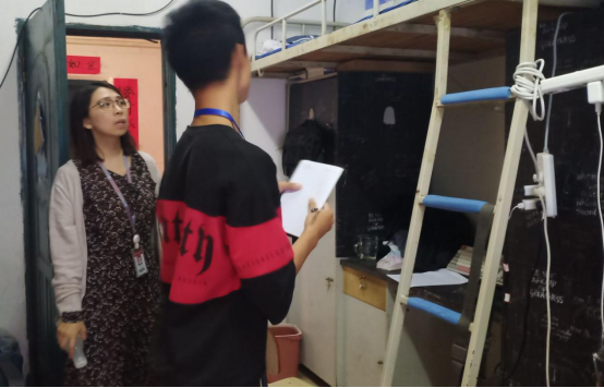 为积极贯彻落实学校疫情防控工作要求,全面提升疫情防控期间学生宿舍安全卫生防护。10月18日中午,我院党总支书记刘峥教授携全体辅导员老师深入学生宿舍开展查寝工作,由团总支学生会督察部同学们协同配合。