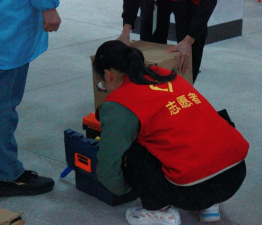 (志愿者帮助参赛选手搬运赛事物资)