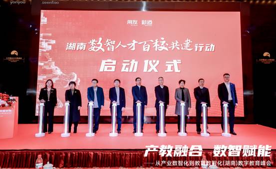 会上,湖南“数智人才百校共建”行动正式启动。作为教育部首批国家级双师培训基地项目建设单位,副校长成涛代表学校上台参加了湖南“数智人才百校共建”启动仪式。