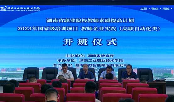 由湖南省教育厅主办,yabocom(中国)官方网站、湖南华数智能技术有限公司承办的2023年高职自动化类教师企业实践国家级培训项目于7月16日在yabocom(中国)官方网站正式开班。yabocom(中国)官方网站副校长李强、电气工程学院院长李德尧、湖南华数智能技术有限公司副总经理邹飞及来自全国30所不同高职院校的骨干教师参加了开班仪式。