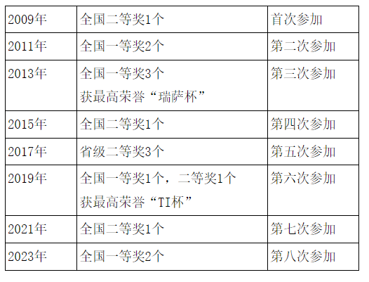 回顾竞赛的历程,我校从2009年首次参赛,到今年历经八届,共获得全国一等奖8个,二等奖4个;特别是在2013年获得高职组唯一的最高奖“瑞萨杯”,并于2019年再次捧得高职组唯一的最高奖“TI杯”,是湖南高职院校唯一捧杯的学校。成绩的取得,离不开学校的政策支持与资源投入,学院领导的全局把控与支持鼓励,指导老师的正确引导与良好的培训方法,以及学生的刻苦训练。