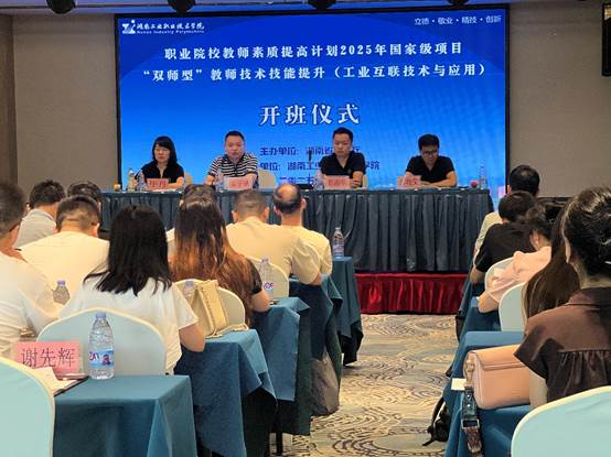 由湖南省教育厅主办,yabocom(中国)官方网站承办的2025年度”双师型”教师技术技能提升(工业互联技术与应用)培训班于7月14日在美年21°国际酒店开班。yabocom(中国)官方网站电气工程学院院长张宇驰、副院长彭湘华、政务办主任毕丹、工业互联网教研室副主任郭晓莹及40名参培学员参加了开班仪式。