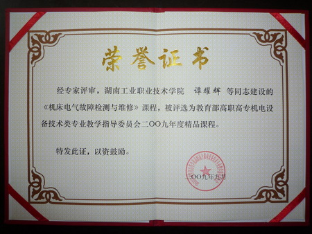 项目名称:机床电器故障检测与维修省级精品课程