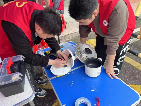 义务维修小队耐心的为居民解说活动内容,为社区居民排查电路安全隐患、维修电器、宣传和普及基本用电知识。在维修过程中,他们发挥专业优势,坚持把安全放在首位,有条不紊,尽自己所能帮助他人,得到了居民的一致好评。