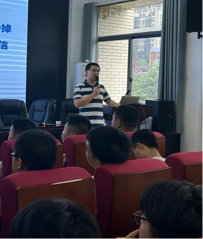 专业讲座也在同一时刻进行中。由我院优秀教师代表黄湘超、侯新艳、唐健豪等专业老师为新生们进行宣讲。首先,老师们对新生们的到来表示热烈欢迎。其次,为新生们介绍了校园的环境和教学楼的分布,对其专业进行了详细介绍,是新生们能够充分的了解自己的专业,想好未来的发展。最后对新生们提出几点建议和要求:1.大学三年,希望同学们可以主动学习,多注重实践,尝试不同的事情,丰富课余生活。2.希望同学在充分了解专业后,着手做好三年的生涯职业规划。3.防范电信网络诈骗,提高反诈骗能力。