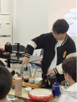 活动初始,由茗语茶旅协会成员以娴熟的手法展示了煮茶的全过程。其后,同学们细细品尝着由茗语茶旅协会同学亲手泡制的香茗。茶香四溢,沁人心脾,同学们在品茶的过程中感受到了茶文化的独特魅力,同样也在热烈的交流互动中,解决了心中的疑问,缓解了焦虑与不安。