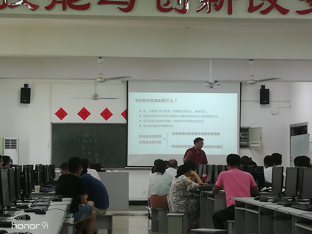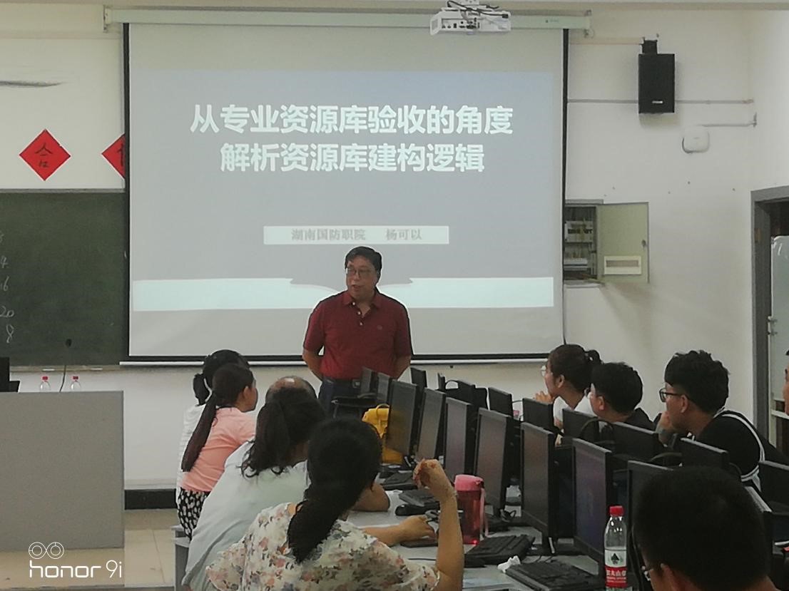 7月29日下午,电气工程学院邀请湖南省职教专家、国家资源库评审专家、湖南国防工业职业技术学院校长杨可以教授,来我院进行了专业(群)资源库建设专题讲座。电气工程学院李德尧院长、张宇驰副院长、国家级培训班全体学员和我院教师参加了此次专题讲座。
