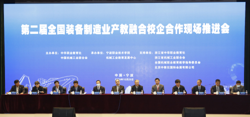 10月28日,由中华职业教育社、中国机械工业联合会联合主办的第二届全国装备制造业产教融合校企合作现场推进会在宁波举办。全国政协副主席、中华职业教育社副理事长辜胜阻作主旨讲话,中国机械工业联合会会长王瑞祥,教育部职成司副司长谢俐,浙江省政协副主席、省中华职业教育社主任陈小平,宁波市政协副主席张明华等分别致辞、讲话。中国机械工业联合会执行副会长于清笈,中共浙江省委统战部副部长王利月、宁波市教育局局长毛才盛等出席会议。开幕会由中华职业教育社党组书记、总干事方乃纯主持。