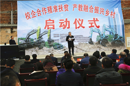 “‘三高四新’战略实施,技术技能人才培养培训是重要支撑,乡村振兴的关键也是人才振兴。要充分激发乡村现有人才活力,扶持培养一批乡村工匠、技能达人和非遗传承人等工作显得尤为重要。”刘建湘在致辞中表示,此次校县企联合举办“校企合作精准扶贫产教融合振兴乡村”启动仪式、开展挖掘机捐赠活动、举行校县企合作洽谈会,就是要充分发挥产教融合“乘数效应”、乡村振兴“催化效应”,推动职业教育精准扶贫与乡村振兴融合发展,贯彻新发展理念、构建新发展格局、践行“三高四新”战略。