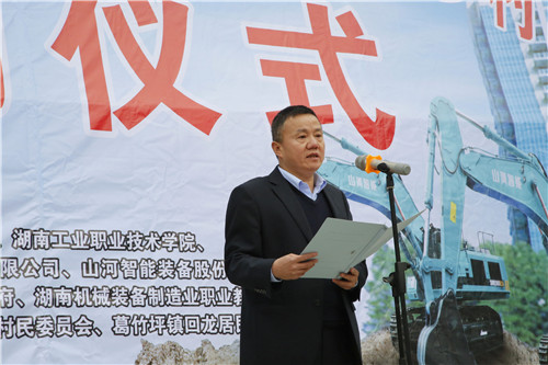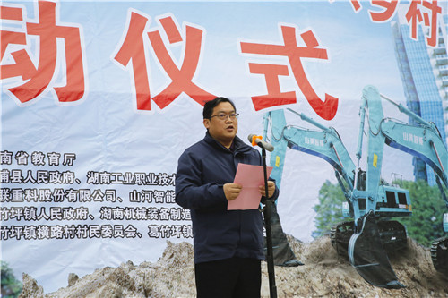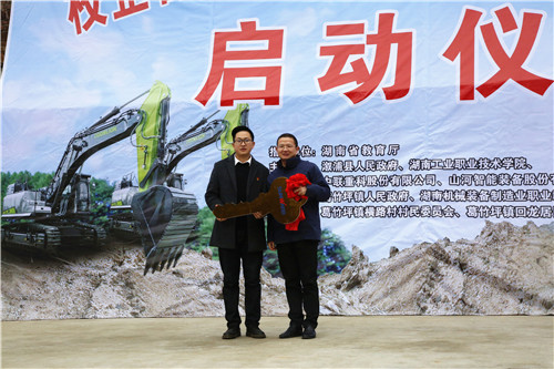 启动仪式由我校与中联重科股份有限公司、山河智能装备股份有限公司、溆浦县人民政府共同主办,葛竹坪镇人民政府、湖南机械装备制造业职业教育集团共同承办。我校党委书记刘建湘、党委副书记杨颖,组织人事处、对外合作交流处相关负责人,中联重科工会副主席郑明国、中联重科土方营销公司副总经理许智慧、中联重科人力资源部副部长李晓虹,山河智能副总裁、工会主席张爱民,山河智能党委副书记、人力资源总监肖伟,溆浦县人民政府办公室副主任刘哲卿,湖南省教育厅驻葛竹坪镇横路村工作队队长麻文君等出席启动仪式。葛竹坪镇党委书记罗志华主持仪式。