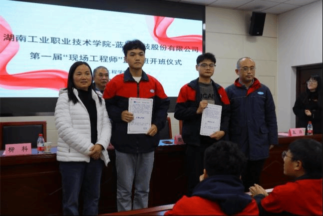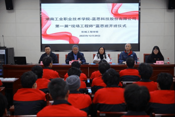 “现场工程师是企业生产过程中不可或缺的一环,他们负责设备的安装、调试、维护和故障排除等工作。随着工业自动化和智能制造的不断发展,对现场工程师的需求越来越大,集团缺口包括现场工程师在内技术人员近千人。”蓝思科技集团培训总监隋明介绍道,蓝思科技在消费电子结构件领域已具有领先的技术和市场地位,愈发需要精操作、懂工艺、会管理、善协作、能创新的综合性技能人才。“湖南工业职院的办学历史悠久,师资力量雄厚,专业设置与集团岗位匹配度高。”他表示,蓝思集团和湖南工业职院校企合作关系建立已久,学校毕业生在公司录用和发展情况良好,故选择与湖南工业职院共同开展“现场工程师”班,希望能为公司智能制造装备操作、智能制造装备维保、精密零件制造工艺设计、生产现场管理及控制等岗位定向培养急需人才。
